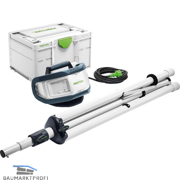 Anwendungsschwerpunkte: Sicher im Handling: alle Berührungsflächen erwärmen sich max. auf 90ºC. Praktisch: 4,8 m Kabellänge, ordentlich verstaut in der Kabelaufwicklung, Flexible Einsatzmölichkeiten: stehend am Boden oder auf Flächen, auf dem Festool Stativ oder beliebig an Haken mit der Aufhängemöglichkeit an der Rückseite. Robuster Einhandgriff.