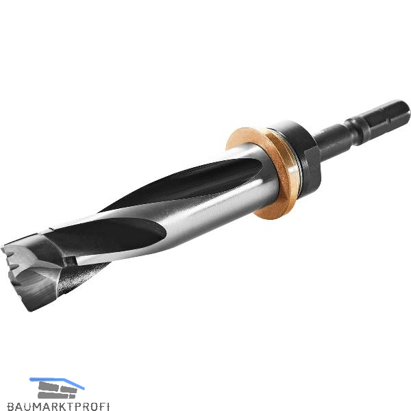 Beschlagbohrer mit Tiefenanschlag für die Flächenbohrung des DOMINO Verbindungbeschlags D8. Abgestimmt auf die Bohrschablone BS-KV D15.