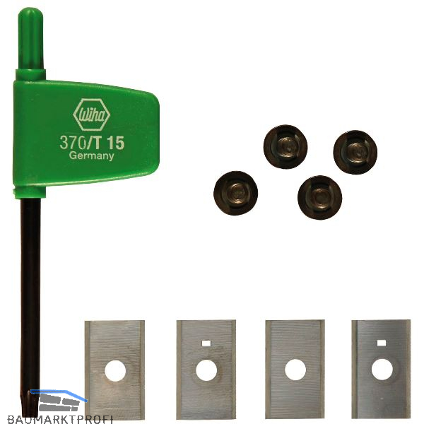 Lieferung inkl. TX-Schlüssel T15, 4 Linsenschrauben, 4 Wendeplatten.