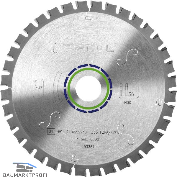 FESTOOL Flachzahn Kreissägeblatt HW ø 210x2,6x30 Zähne 36 Flachzahn