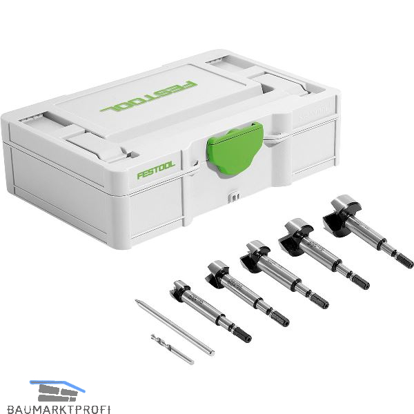 Lieferung inkl. Forstnerbohrer FB D 15 CE / 20 CE / 25 CE / 30 CE / 35 CE, konischer Zentrierbohrer Ø 4 mm, Austreiber, im Systainer SYS MINI 1 TL TRA.