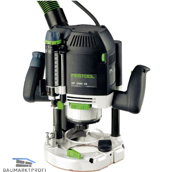 Einzigartig in Leistung und Bedienung. Höchste Kraftentfaltung und satter Durchzug bei harten Materialien und großen Materialstärken. Ergonomisches Arbeiten durch den um 30° versetzten Seitenanschlag. Werkzeugloser Kopierring- und Laufsohlenwechsel. Schneller Komfort-Fräserwechsel mit Wippe und Ratschenprinzip. Schnelle Profilfräsereinstellung durch ein- und auskoppelbare Grundplatte. Mehr Präzision durch extreme Verwindungssteifigkeit dank doppelter Führungssäulenklemmung. Einfache Frästiefeneinstellung auf 1/10 mm genau. Bis zu 99 % Absaugung beim Kantenfräsen durch absenkbaren Absaugring und Spanfänger.