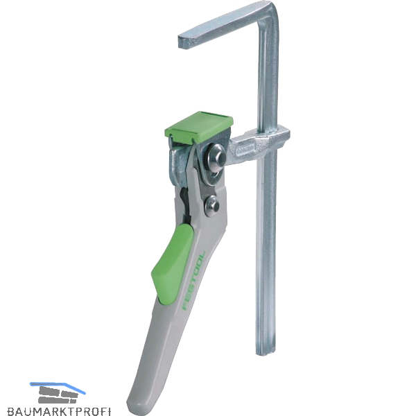 Zum sicheren Fixieren der Führungsschiene, wird in der unteren Nut eingesetzt. Die Form des Festbügels ist auf die Führungsschienen Nut und die Profile des MFT und der Precisio abgestimmt. Dank der Rastung kann sich die Zwinge auch bei leichten Vibrationen nicht lösen. Ganzstahlausführung.