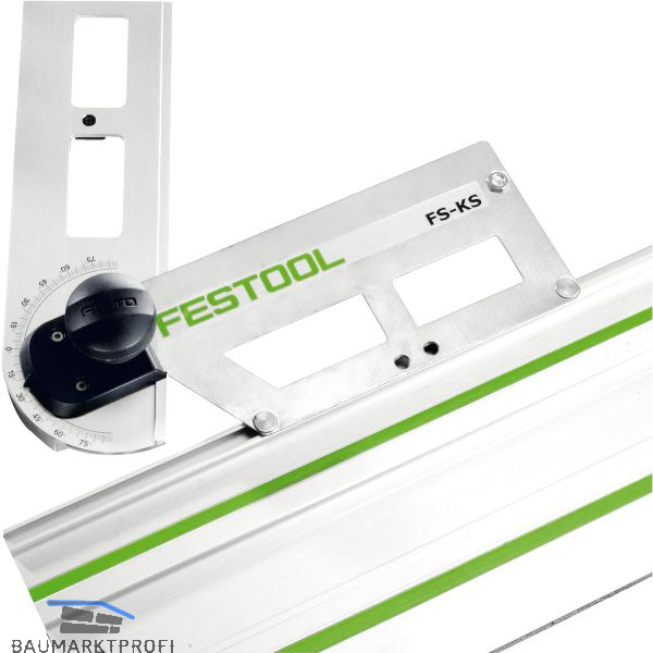 Winkel können von der Wand/Werkstück aus, an die Führungsschiene direkt übertragen werden. Kein Messen mit zusätzlichem Winkelmesser notwendig. Winkelmaße an Skala einstellbar, einsetzen an der Führungsschiene erfolgt in der Zubehörnut. Für Winkelschnitte mit der Führungsschiene zwischen 0º und 180º.