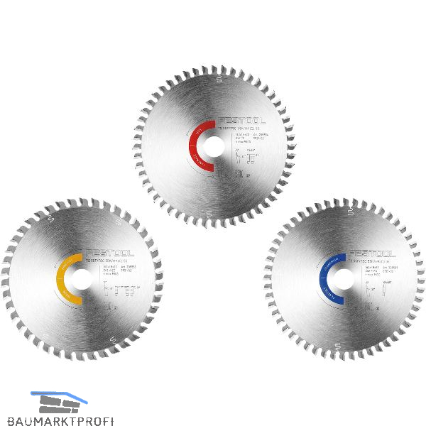 Bestehend aus: 1x Kreissägeblatt WOOD FINE CUT HW, 1x Kreissägeblatt LAMINAT/HPL HW, 1x Kreissägeblatt ALUMINIUM/PLASTIC HW.