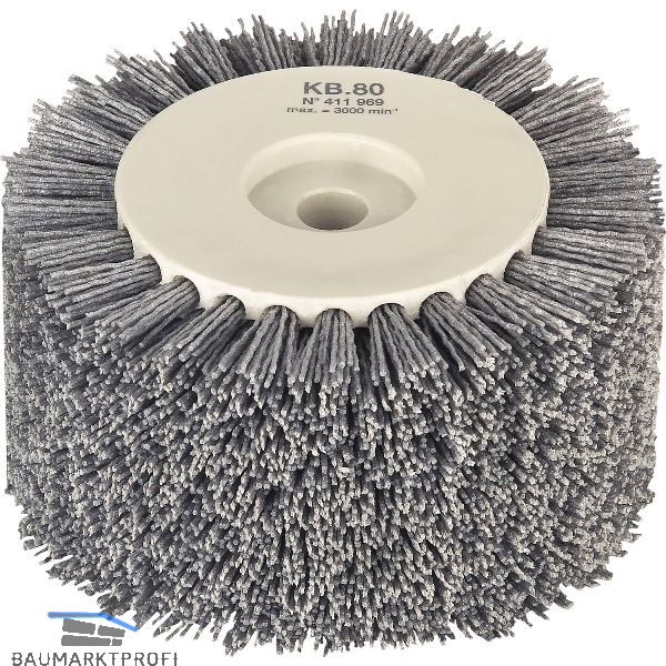 Kunststoffborsten mit eingebettetem Schleifkorn K80. Grundkörper aus gespritztem Kunststoff. Zum Zwischenschleifen. Ideal für den 2 Arbeitsgang: Schleifen der Holzoberfläche. Passend zu Bürstmaschine BMS 180.