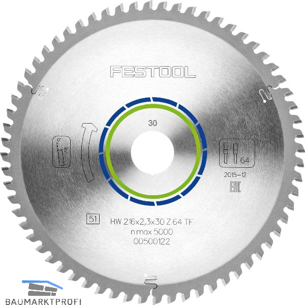 FESTOOL Spezial Kreissägeblatt HW ø 216 x 30 Zähne 64 Trapez Flachzahn