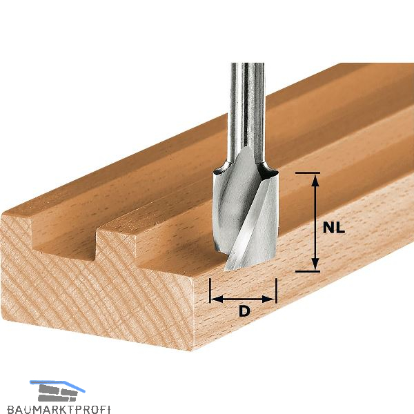 Spiralnutfräser für besonders angenehme Laufruhe, in HS-Stahl optimal für Weichholz-Anwendungen geeignet. Durch die Wendelung der Fräserschneide werden Frässpäne direkt nach oben gezogen und optimal abgesaugt.