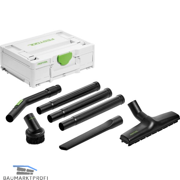 Lieferung inkl. Handrohr gebogen D 36 HR-K AS, 3 Verlängerungsrohre D 36 VR-K AS, Bodendüse D 36 BD 300, Fugendüse D 36 FD-300, Saugpinsel D 36 SP, im Systainer SYS3 M 137