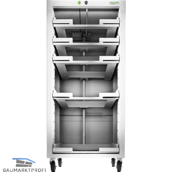 Ordnung auf Rädern. Das mobile Aufbewahrungssystm für Systainer und Sortainer sorgt für Ordnung und Mobilität in der Werkstatt. Stahlblech-Korpus mit 5 Systainer-Vollauszügen. Die einzelnen Auszüge können bei Bedarf in der Höhe verstellt werden - für eine flexible Bestückung mit unterschiedlichen Systainer - und Sortainer-Größen. Mit Feststellbremse für sicheren Stand, 4 kugelgelagere Gelenkrollen.
