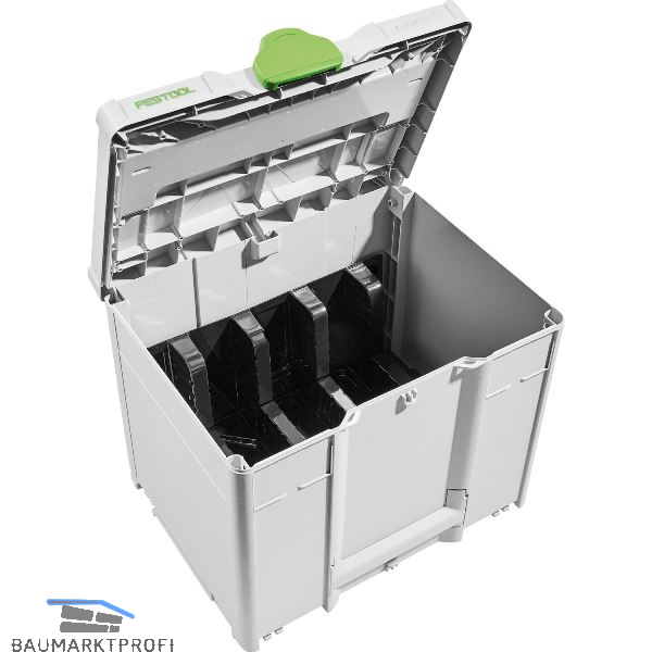 Einfach praktisch: Maschinen, Zubehör und Verbrauchsmaterial sind im Systainer³ optimal geschützt, übersichtlich verstaut und einfach zu transportieren. Dank bewährtem T-LOC Bedienelement gelingt Schließen, Öffnen und Koppeln mit nur einem Dreh.