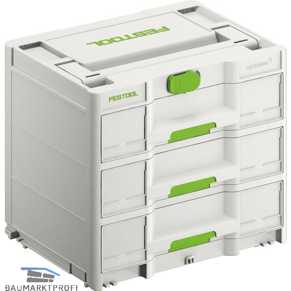 - Einfach praktisch: Maschinen, Zubehör und Verbrauchsmaterial sind im Systainer³ optimal geschützt, übersichtlich verstaut und einfach zu transportieren. Dank bewährtem T-LOC Bedienelement gelingt Schließen, Öffnen und Koppeln mit nur einem Dreh.