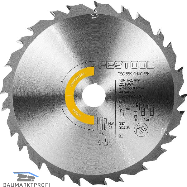 Der Allrounder für die Bearbeitung aller Hölzer, Holzwerkstoffe und Baustoffplatten. Die 1,6 mm Dünnschnittsägeblätter wurden speziell für Akku-Handkreissägen entwickelt. Sie bestehen aus einem qualitativ hochwertigen Stahl sowie Sägezähnen aus Feinstkorn-Hartmetall. Die besondere Verzahnung besteht aus fünf Gruppen mit je fünf Zähnen. Die Kombination aus vier aufeinander folgenden Wechselzähnen und einem Flachzahn sorgt für eine optimale Schnittperformance und ermöglicht dir perfekte Schnittergebnisse.