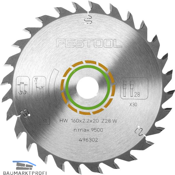 FESTOOL Universal Kreissägeblatt HW ø 160 x 2.2 x 20 Zähne 28 Wechselzahn