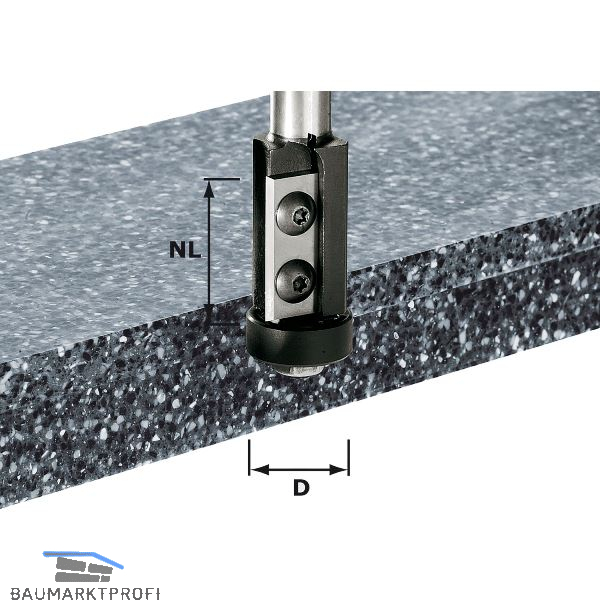 Wendeplatten-Bündigfräser für konstante Frästiefen - das kunststoffummantelte Kugellager sorgt für streifenfreie Ergebnisse.