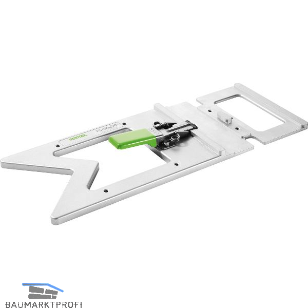Der aus einem Stück gefräste Aluminium-Anschlag garantiert präzise und wiederholgenaue rechtwinklige Schnitte ohne Nachjustierung. Dank Schnellspannsystem ist der Winkelanschlag im Handumdrehen an der Führungsschiene angebracht und wird in Kombination mit Handkreissäge und Säge- und Arbeitstisch zur mobilen Plattensäge. Passend zu FS/2.