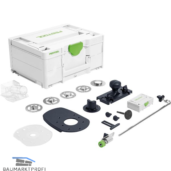 Lieferung inkl. Führungsschienen-Adapter, Feineinstellung FE-FS/OF 1000, Abstützung, Zentrierdorn, Kopierring D17/D24/D27/D30/D40, Laufsohle LAS-OF 1010 R, Auflage AFB-OF 1010 R, Stangenzirkel SZ-OF 1000, Absaughaube für Seitenanschlag OF 1010 R, Spanfänger, Systainer SYS3 XXS 33, im Systainer SYS3 M 187.