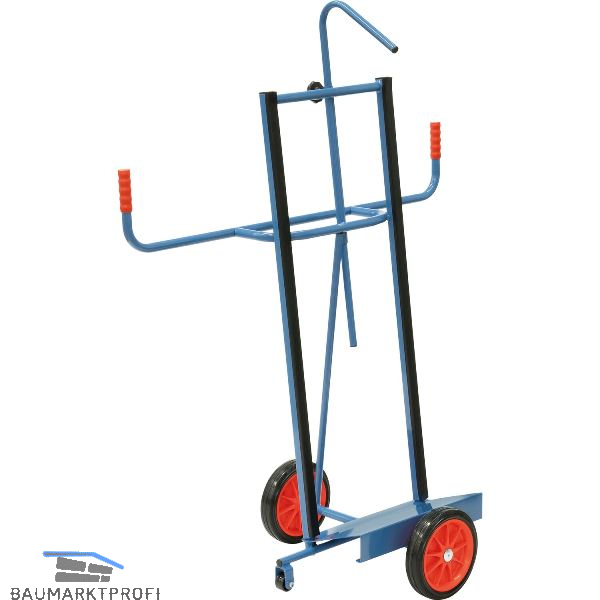 Der Plattenroller eignet sich ideal für den Längstransport großflächiger Holz- und Kunststoffplatten. Er verfügt über eine stabile Stahlrohr-Konstruktion mit einer robusten Schaufel aus Stahlblech, sowie einem einstellbarem Niederhalter als Kippsicherung. Die Oberfläche ist pulverbeschichtet und damit stoß- und kratzfest. Ausgestattet ist der Plattenkarren mit Vollgummirädern für ruhigen Lauf. Rollenlager in den Naben gewährleisten einen ruhigen Lauf und minimalen Rollwiderstand.