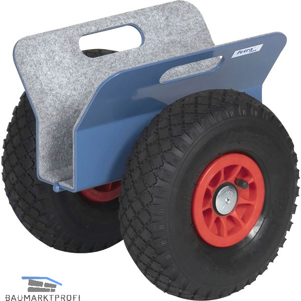 Plattenroller mit Klemmbacken. Stahl-Schweißkonstruktion, pulverbeschichtet. Klemmfläche mit Filzbelag. Sichere Klemmung durch das Gewicht des Ladegutes auf die Klappkonstruktion.