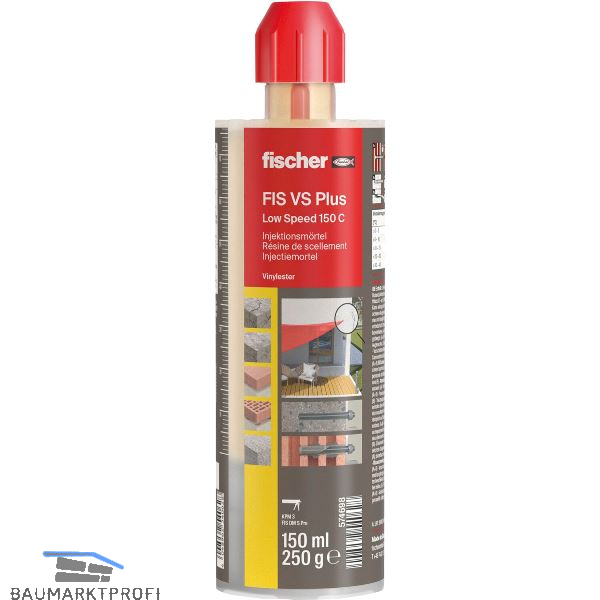 Der fischer Injektionsmörtel FIS VS Plus Low Speed ist ein 2K-Injektionsmörtel auf Vinylester-Hybrid-Basis mit verlängerter Verarbeitungszeit. Dies verhindert auch bei sommerlichen Temperaturen das vorzeitige Aushärten. Der FIS VS Plus Low Speed ist in einer Vielzahl von Systemen zugelassen und bietet damit garantierte Sicherheit für nahezu jeden Anwendungsfall. Ein umfangreiches, abgestimmtes Zubehörsortiment steigert die große Flexibilität des Systems.