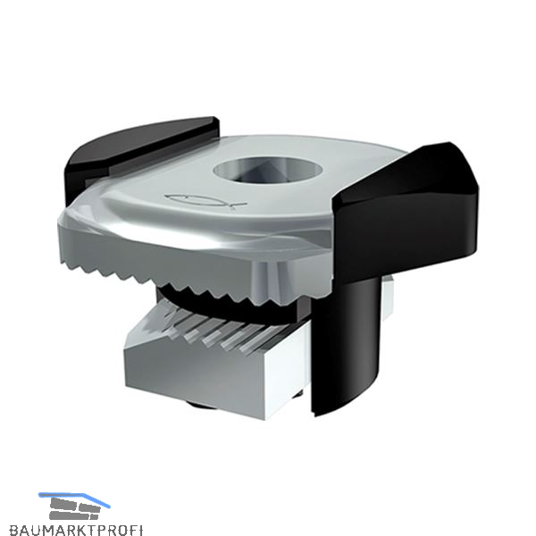 - Die ausgeprägte Verzahnung in der Schiebemutter ermöglicht die exakte und sichere Positionierung in den FLS Montageschienen und erleichtert die Montage nachhaltig.