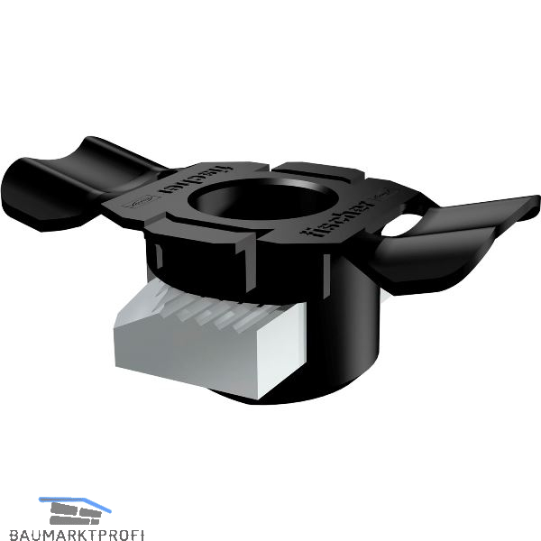 - Das spezielle und versenkbare Widerlager am Kunststoff halter der Schiebemutter FSM Clix P ermöglicht eine Verbindung von Anbauteil und Montageschiene ohne Kunststoff zwischenlage für eine sichere Verbindung Metall auf Metall.