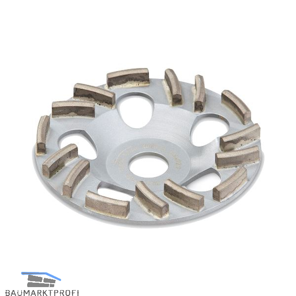 Thermojet Super für den Flächenstrich bei thermoplastischen Anstrichen, beschichtete Gehwegplatten, für die Balkon- und Betonsanierung. Schleifteller mit den in 2er-Reihen schräg gestellten Diamantsegmenten sorgt für rund 30% schnelleren Arbeitsfortschritt. Ovale patentierte Turbo-Absaugbohrungen lassen einen ultrastarken Luftzug entstehen und verhindert somit das Zusetzen und Überhitzen der Segmente. Kein Anschleifen nötig.