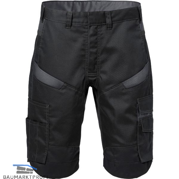 Moderne Shorts für den Service-, Industrie- oder Bausektor. Gefertigt aus leichtem und haltbarem Material mit mechanischem Stretch für viel Bewegungsfreiheit. Geeignet für Industriewäsche. Verdeckter Verschlussknopf, 2 Vordertaschen und 2 Gesäßtaschen. Doppelt verstärkte Schrittnaht. 2 Beintaschen, rechte Beintasche mit Extrataschen, linke Beintasche mit Patte und Klettverschluss, Handytasche mit Patte und Extratasche mit Patte, Klettverschluss und einem D-Ring unter der Patte. CORDURA® Verstärkung an der Unterseite der Shorts.