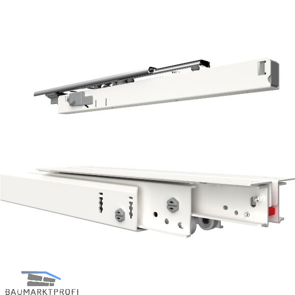 Marke: Fulterer Type: Kulissenauszug FR 777 A Länge (mm): 800 Auszugsverlust (mm): 16 Tragkraft (kg): 200 Material: Stahl pulverbeschichtet weiß