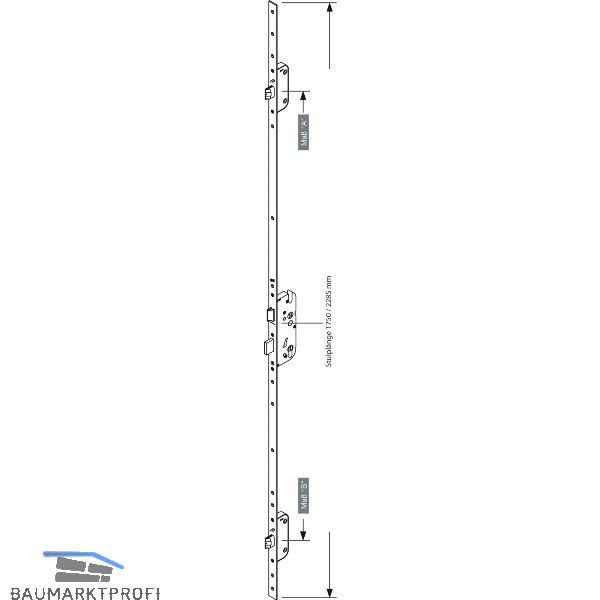 Ausführung: Fallenriegel bei Maß A 730/ Maß B 760 mm, Drückerhöhe variabel