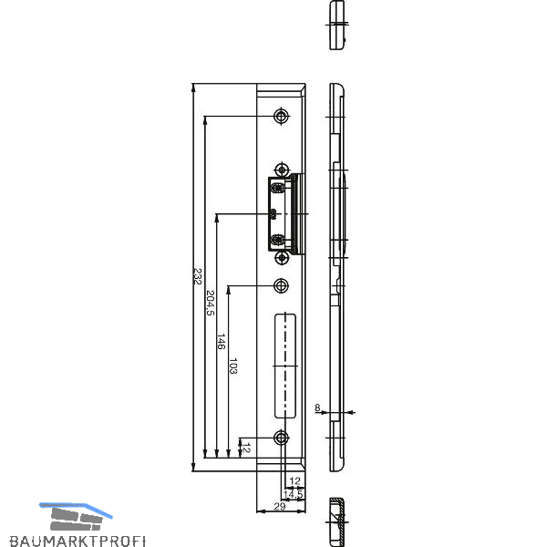 Ausführung: Schließblech zum Aufschrauben, verstellbar mit AT-Stück