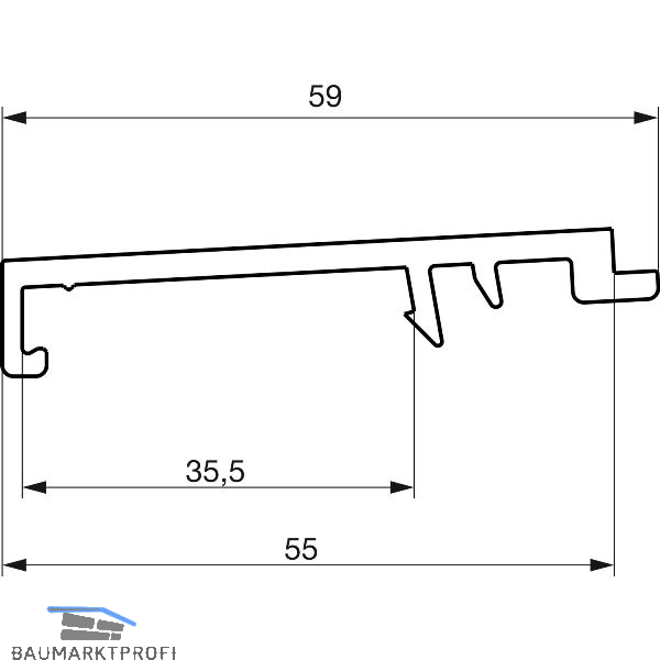 Thermostep 204: Achse Laufschiene bis Außenkante Wetterprofil 184 mm.
