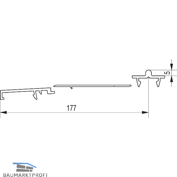 Lieferumfang:1 Wetterprofil 144 P 16391 Trittschwelle P 19501 Laufschiene 5 P 1636, Höhe 5 mm