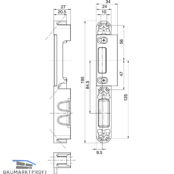 Lappenschließblech für Secury zum Einfräsen, 195 x 24 x 27 mm, verstellbar