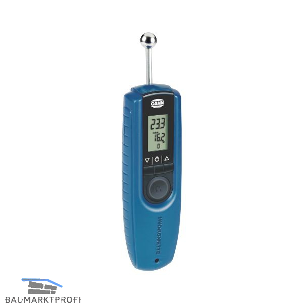 Elektronischer Baufeuchteindikator zum zerstörungsfreien Messen von Feuchtigkeit in Baustoffen. Die Hydromette arbeitet nach dem Dielektrizitätskonstante-/ Hochfrequenz-Messprinzip. Die vielseitig einsetzbare Kugelsonde dient zum Aufspüren von Feuchtigkeit in Baustoffen aller Art sowie zur Erkennung der Feuchtigkeitsverteilung in Wänden, Decken und Fußböden. Für jeden Baustoff kann individuell ein Grenzwert gesetzt werden, bei dessen Überschreitung ein akustisches Warnsignal ertönt.