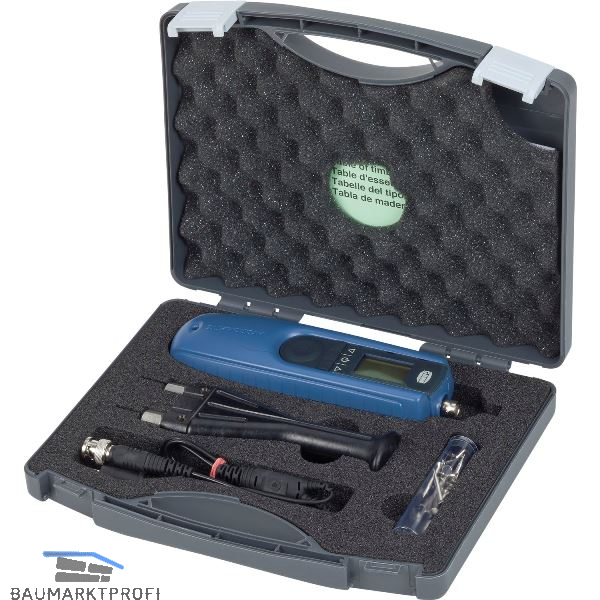 Elektronischer Holzfeuchtemesser nach dem Widerstands-Messprinzip für Präzisionsmessungen von Schnittholz (bis 180 mm Stärke), Spanplatten und Furnieren durch Einzelmessungen vor und nach der Verarbeitung. Zusätzlich wird über die einstellbare Holztemperatur-Kompensation eine Optimierung des Messwertes erreicht.