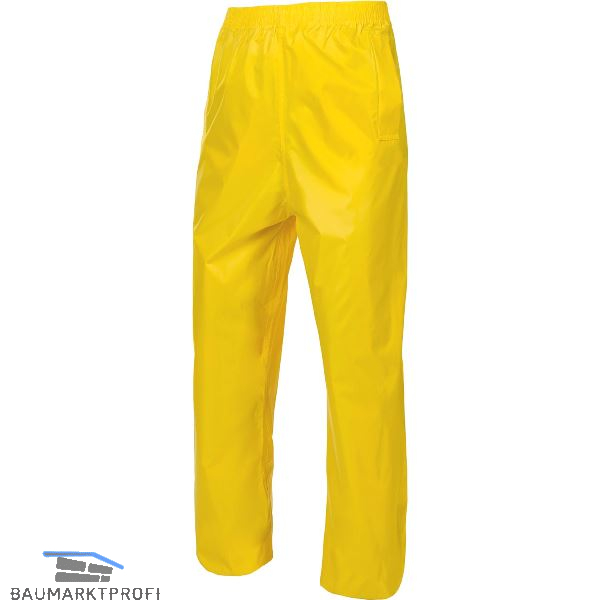 Regenhose aus 100% Polyester mit Vinyl-Beschichtung. Gummizug im Bund, 2 Taschen, Beinabschluss weitenverstellbar.