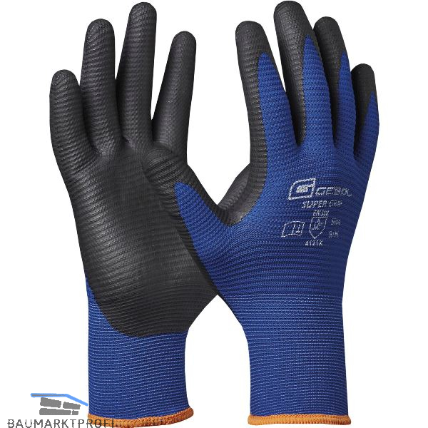 Profiqualität aus nahtlosem Feinstrick in Nylon mit Nitril Beschichtung gerilltes Trägermaterial, hervorragende Griffsicherheit und sehr gute Passform, hohe Abriebfestigkeit und gute Beständigkeit gegen Fette und Öle.