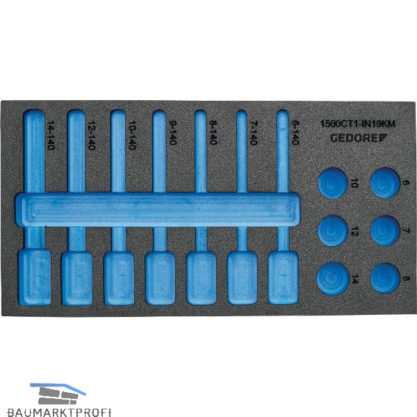 Für die Schubfachordnung in den Gedore Werkzeugwagen und Rollwerkbänken mit variabler Schubfachunterteilung. Einfache optische Vollständigkeitsprüfung durch 2-farbige Schaumstoffeinlagen. Besonders geeignet für Arbeiten in sensiblen Bereichen, in denen sichergestellt werden muß, dass kein Werkzeug zurückbleibt. Unterlage blau, Oberlage schwarz. Die Farbe signalisiert fehlendes Werkzeug. Das Werkzeug liegt verrutschsicher in seinem Nest und ist vor Beschädigungen geschützt. Griffmulden erleichtern das Herausnehmen des Werkzeuges. Resistent gegen Öle und Fette, leicht zu Reinigen mit Wasser, Seife und einer Hand-/Nagelbürste.