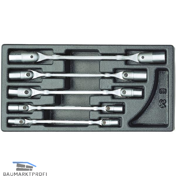 Inhalt: je 1 x Doppel-Gelenkschlüssel UD-Profil SW. 8x9, 10x11, 12x13, 14x15, 16x17 mm.