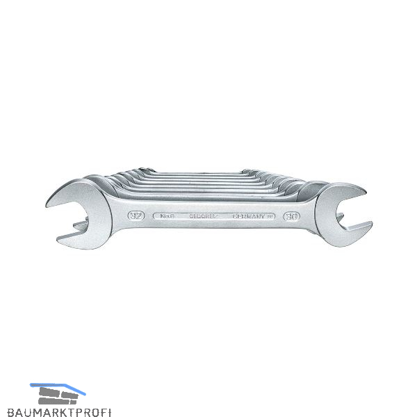 Marke: Gedore Schlüsselweite (mm): 6 x 7, 8 x 9, 10 x 11, 12 x 13, 14 x 15, 16 x 17, 18 x 19, 20 x 22, 24 x 27, 30 x 32 Satzgröße: 10-tlg. DIN: 3110 Oberfläche: verchromt Material: Chrom-Vanadium Stahl 31CrV3 Type: 6-100