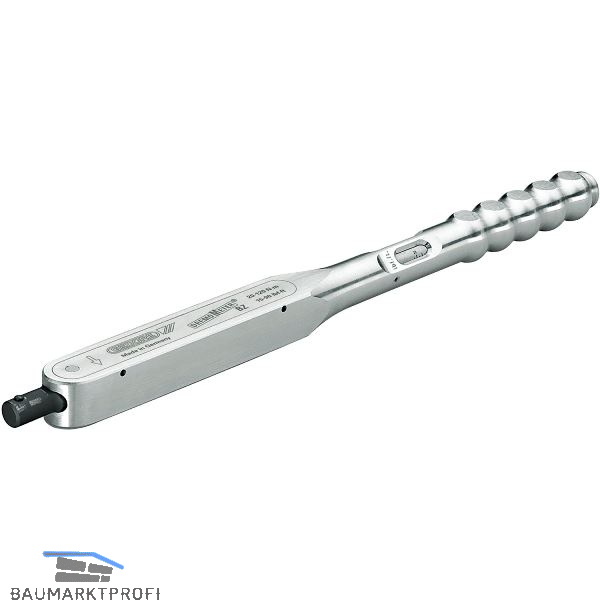 Großer Werkzeugaufnahme-Querschnitt des Zapfens für große Drehmomente. Klassifiziert nach DIN EN ISO 6789:2003 Typ II Klasse A, mit rückführbarem Werkszertifikat. Kalibriert auf eine zulässige Abweichung von +/- 3%. Leicht, robust und unempfindlich. Je nach Werkzeugeinsatz kann sowohl nach vorne (z.B. Aufsteckmaulschlüssel) oder zur Seite (z.B. Umschaltknarre und Steckschlüsseleinsatz) gearbeitet werden. Betätigung nur an der Griffmitte. Verstellknopf am Griffende. Der Drehmomentschlüssel muss auf einen Fixwert eingestellt werden. Mit Arretierung und Sicherung.
