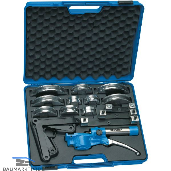 Lieferung inkl. 1 Grundgerät hydraulisch, 10 Biegesegmente mit Gegenhaltern für Rohre: 6, 8, 10, 12, 14, 15, 16, 18, 20, 22 mm.