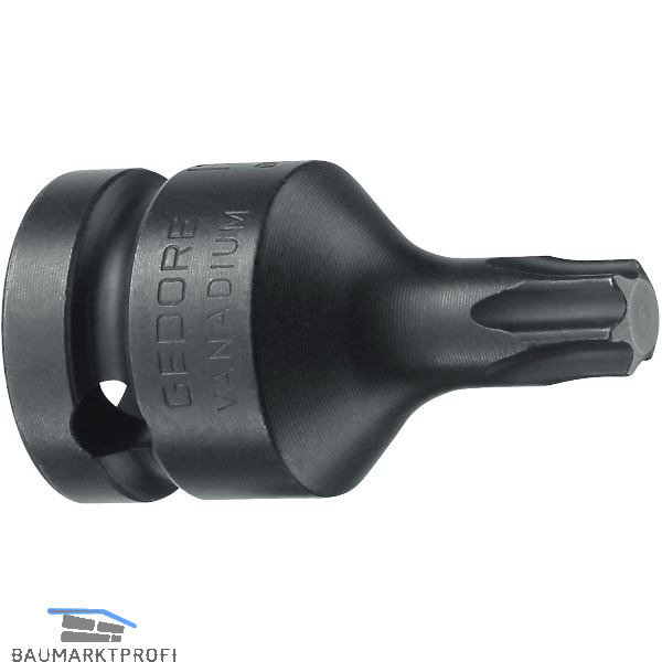 Marke: Gedore Größe: T 45 für Schrauben: M 8 - M 10 Länge (mm): 47 Stiftlänge (mm): 26 d (mm): 25 Antrieb: 1/2" vierkant Profil: Innen-Torx® Type: ITX 19 Oberfläche: manganphosphatiert Material: Gedore Sonderstahl