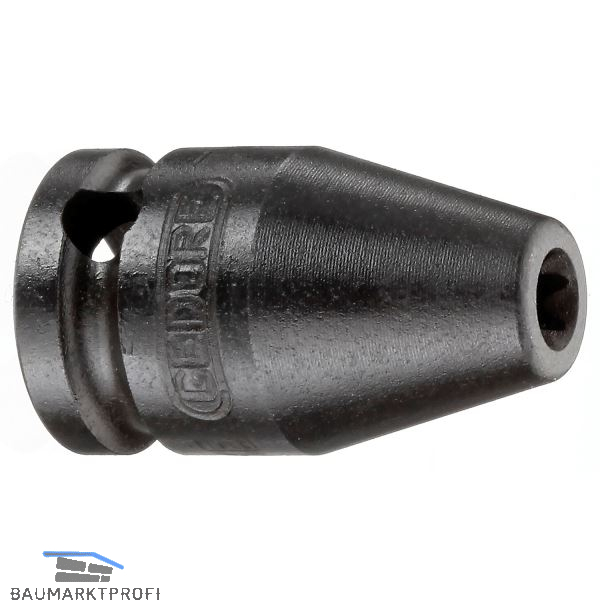 Marke: Gedore Größe: E 10 für Schrauben: M 8 Länge (mm): 32 d1 (mm): 12,5 d2 (mm): 19 t (mm): 9 Antrieb: 3/8" vierkant Profil: Torx® Type: TX K 30 Oberfläche: brüniert Material: Gedore Sonderstahl