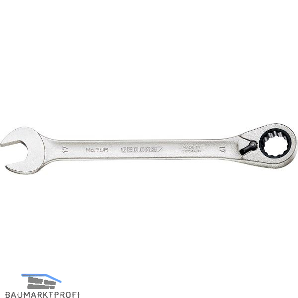 Ringseite 13º abgewinkelt, umschaltbar, feinverzahnt (72 Zähne), mit gleichen Schlüsselweiten. Sehr hohe Drehmomentübertragung. Arbeitswinkel: 7° von 8 bis 15 mm, 6° von 16 bis 27 mm, 5° von 30 bis 36 mm. Taillierter Schaft, verwindungssteife Geometrie mit Doppel-T-Träger Effekt.