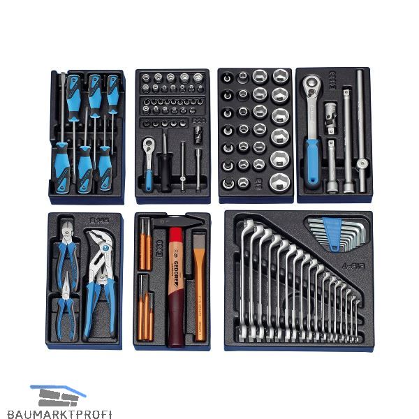 Allgemeines Basis-Sortiment für den Einsteiger aller Berufsgruppen. Werkzeuge in metrischen Abmessungen. Bewährte GEDORE ES-Werkzeugmodule aus ABS-Kunststoff. Für Werkzeugwagen workster und Werkbank 1506 XL Variante 2511 und 2810.