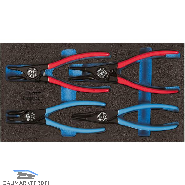 In 1/3 Check-Tool-Modul. Das Werkzeug liegt verrutschsicher in seinem Nest und ist vor Beschädigungen geschützt. Griffmulden erleichtern das Herausnehmen des Werkzeuges. Deutlich sichtbare Werkzeugkonturen erleichtern das Zurücklegen in das richtige Nest. Resistent gegen Öle und Fette.