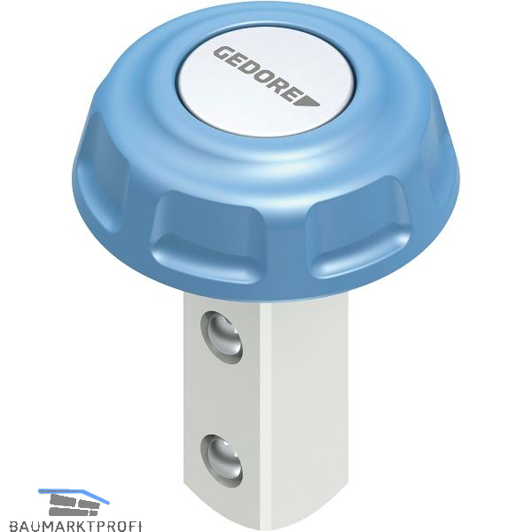 Mit Kugelsicherung und Auslöseknopf. Mit blauer Kunststoffkappe.