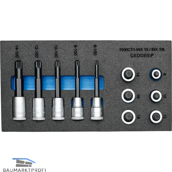 Inhalt: je 1 x Schraubendrehereinsatz 1/2" Vielzahn M8, M10, M12, M14, M16, M18,